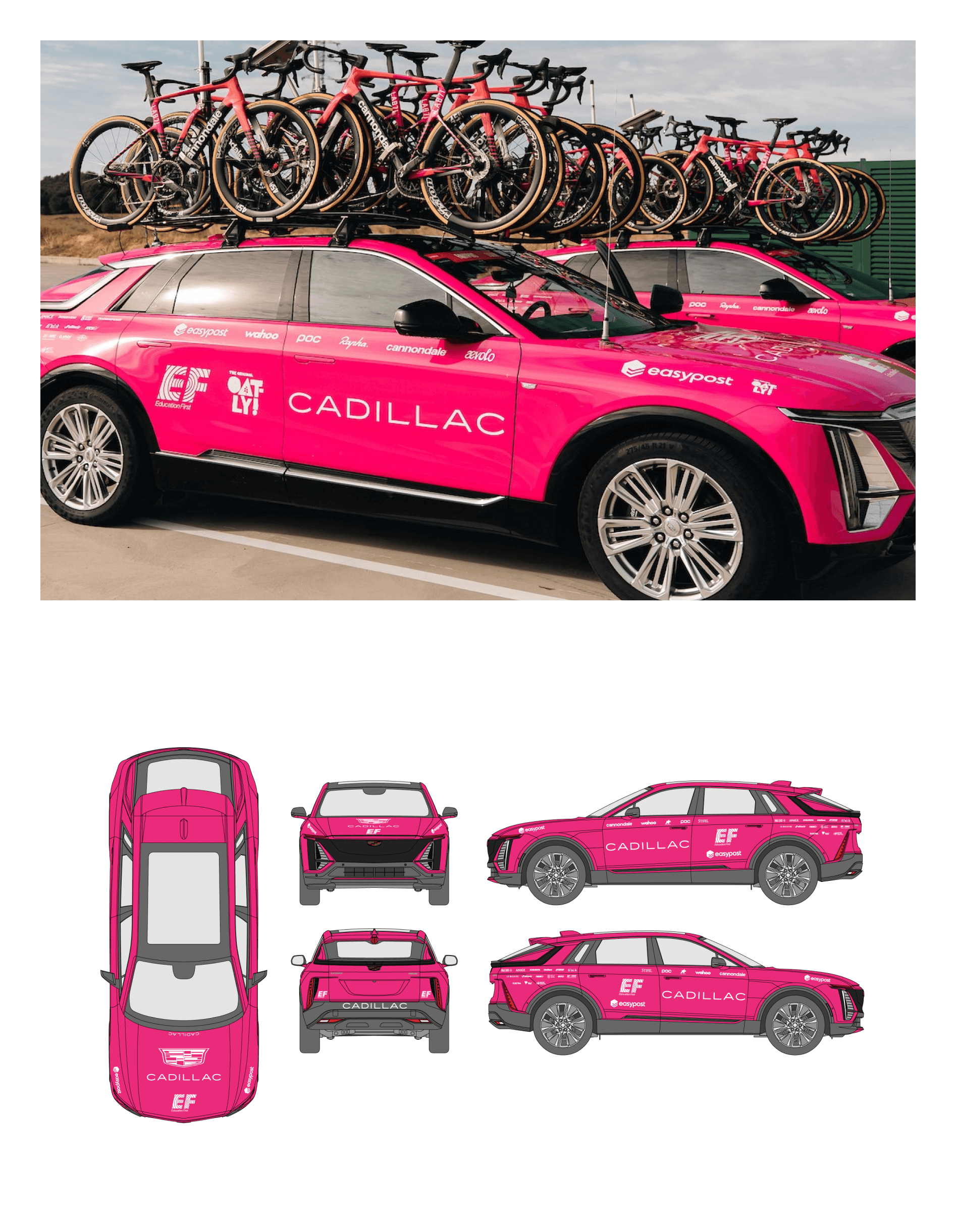 EF Education-EasyPost is one of professional cycling's most design-forward teams. The EF x Palace collaboration set the standard for what sport and streetwear crossover could look like. As the sole in-house designer, I worked across fan merchandise, VIP hospitality, event collateral, social graphics, and vehicle graphics. Every touchpoint that isn't the kit itself.