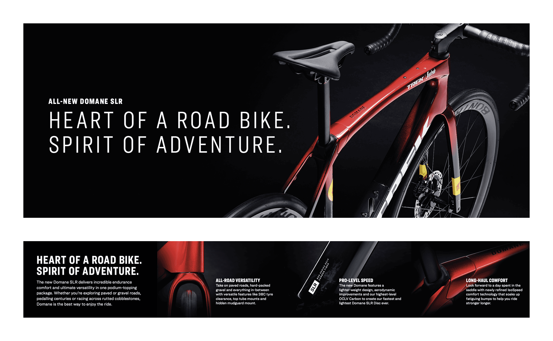 Trek is one of the world's largest bicycle brands, with a central design team in Waterloo setting the creative standard globally. As part of a three-person European design team, I adapted Waterloo's campaign work for local markets — in-store POS, large format print, social ads, and web assets for new bike launches. The standout project was designing store-specific cycling kit for Trek's directly owned stores across Europe. Each design was tailored to its local area and customer base, requiring research, collaboration with store managers, and tight production timelines.
